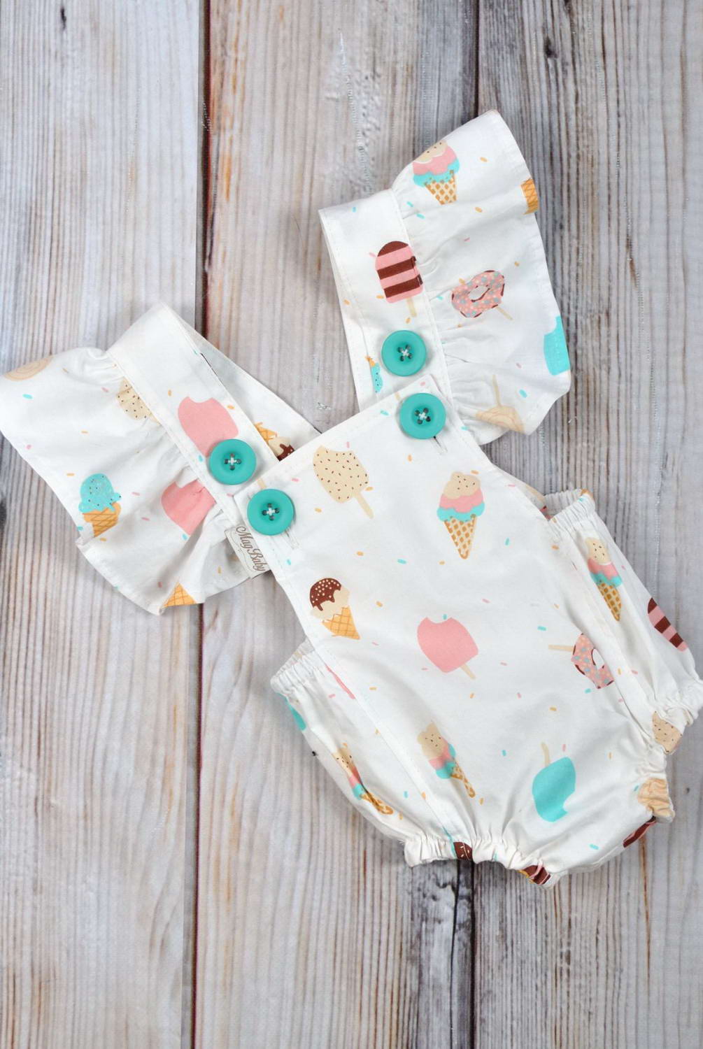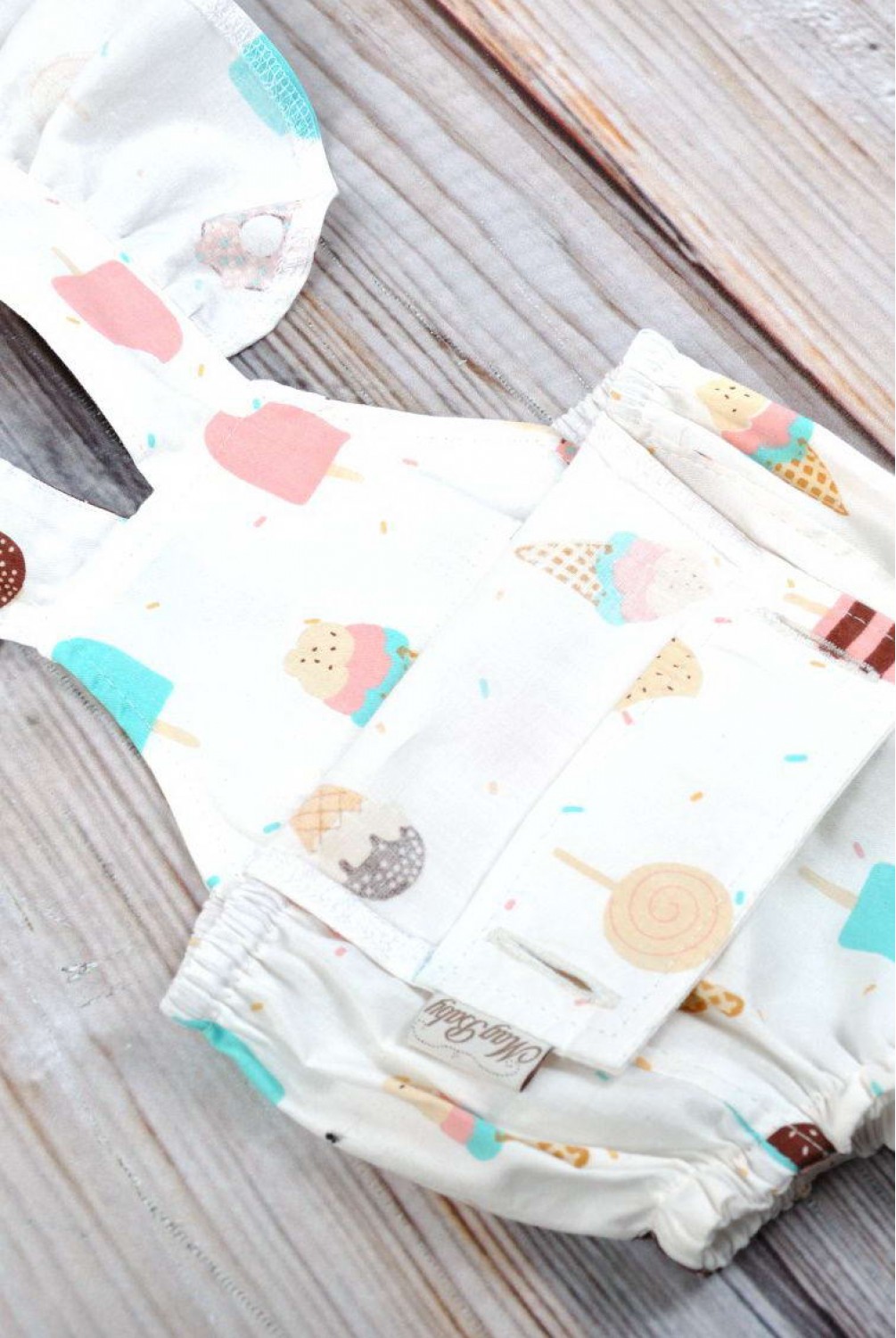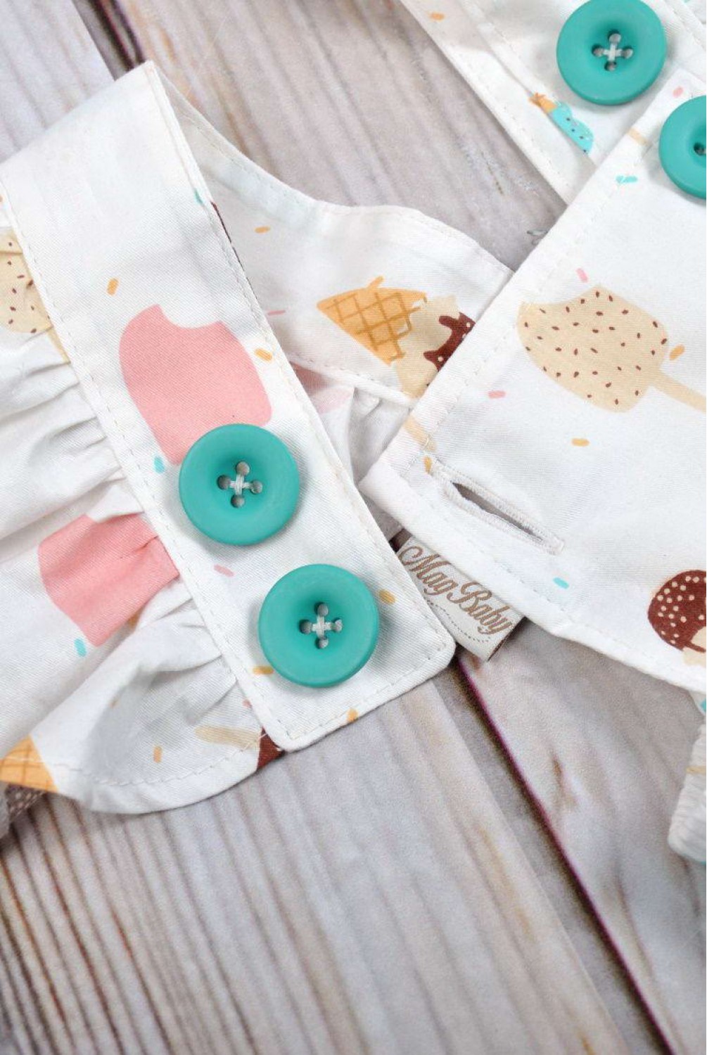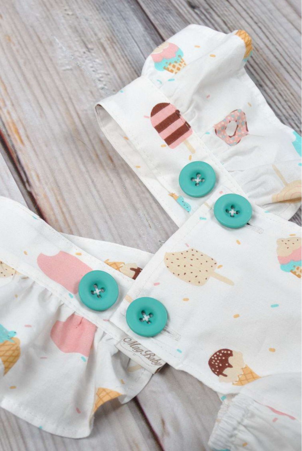 Перед Вами ромпер с воланами из натурального хлопка, который можно одевать на голое тело без дополнительных одежд. Одевается он через ноги и имеет застежку в виде пуговиц. Пуговицы расположены на лямках и их по две на каждой. А это значит, что у вас будет возможность увеличить размер не только застегнув на более низкую пуговицу, а ещё и перешив ее. Ножки обхватывает мягкая резиночка.