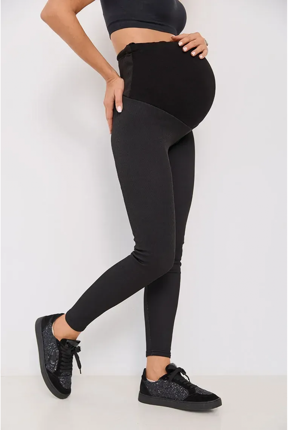 Теплые лосины в рубчик для беременных Regina - Черный Lullababe