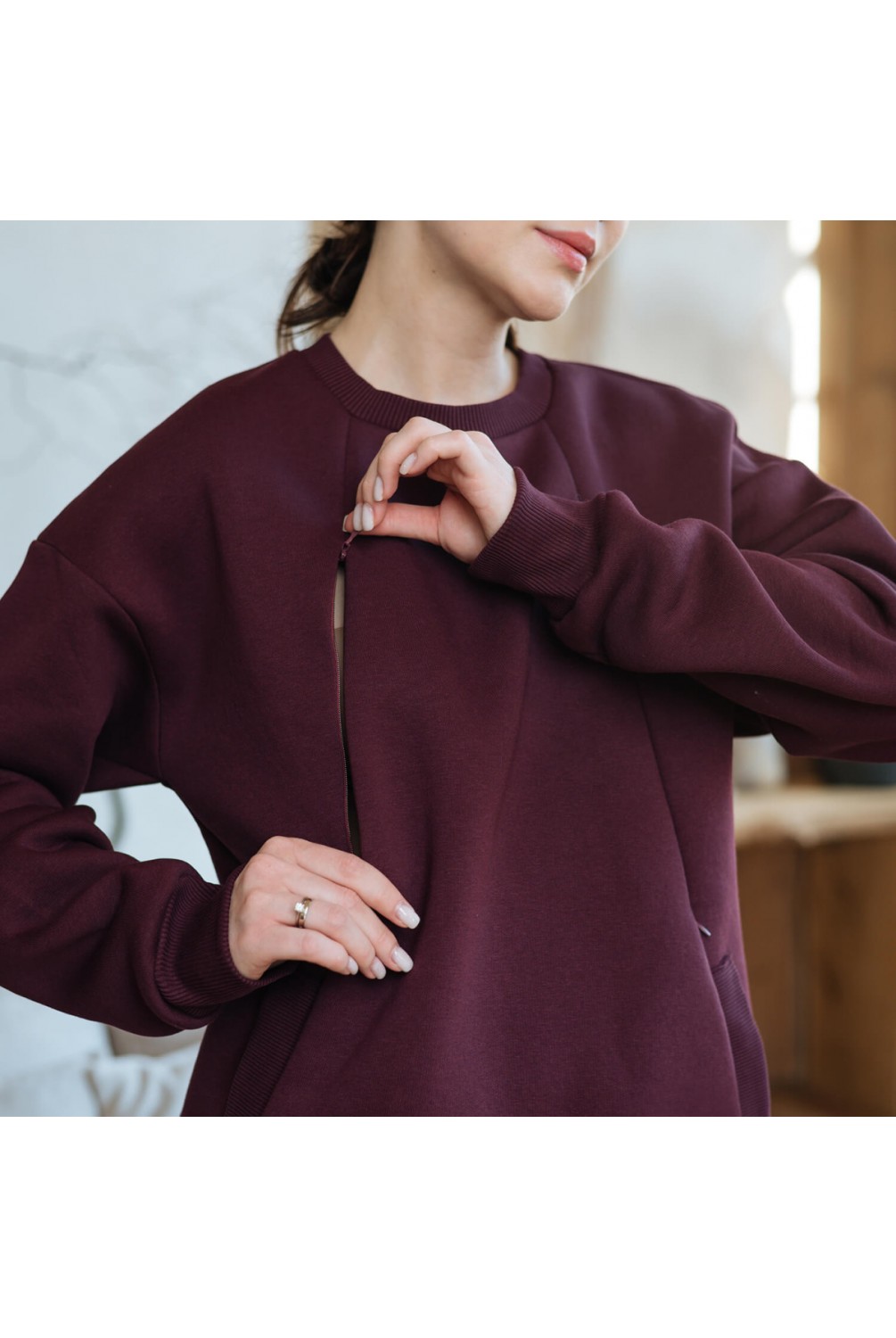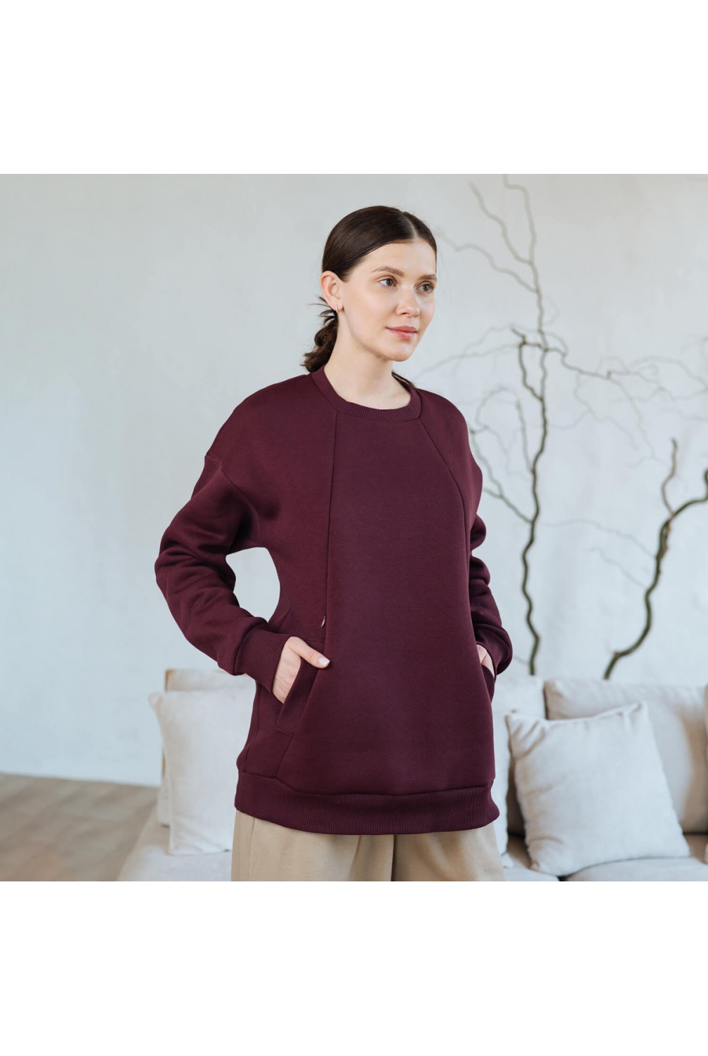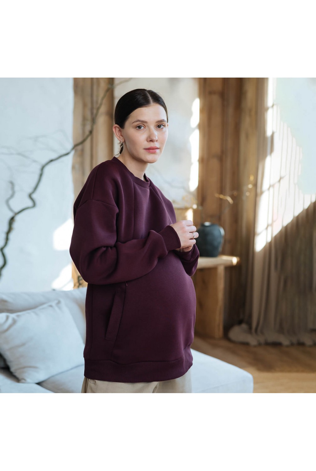 Кофта 2 в 1: подходит для беременных и кормящих мам.Оверсайз фасон2 секретных кармана на змейке для кормления ребенка2 наружные карманыТеплый трикотаж трехнитка с начесом70% хлопок / 30% полиэстерСделано в Украине