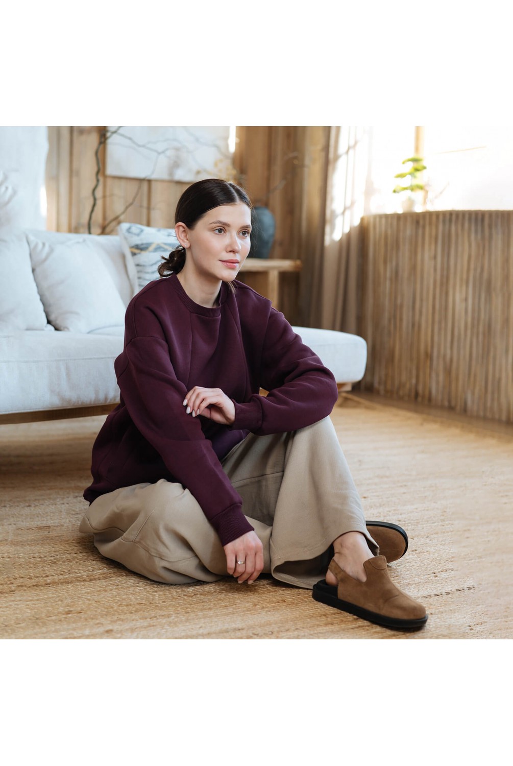 Удобный оверсайз свитшот из мягкого и теплого трикотажа на флисе – идеальное решение для холодной погоды. "Секреты" для грудного вскармливания скрыты за потаенными змейками. Благодаря свободному крою подходит для беременных.