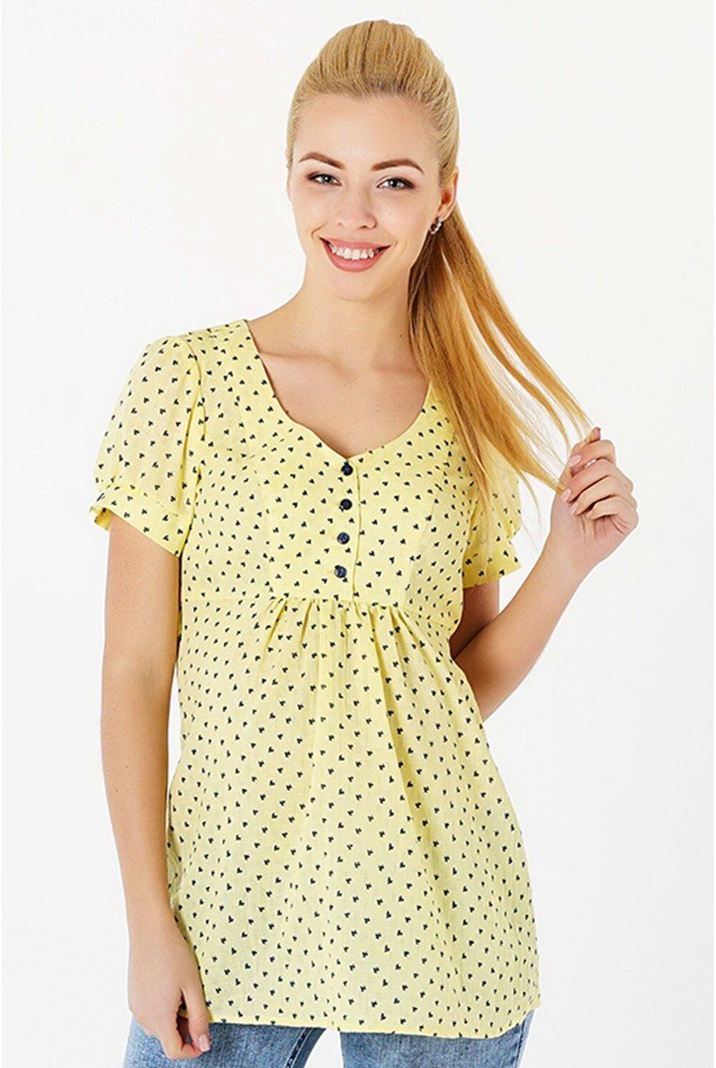 Легкая, приятная к телу блуза А-силуета со сборкой под грудью. Интересная особенность изделия: короткие рукава фонарики с имитацией манжета, кроме того, лиф спереди на пуговицах можно использовать для секрета кормления.