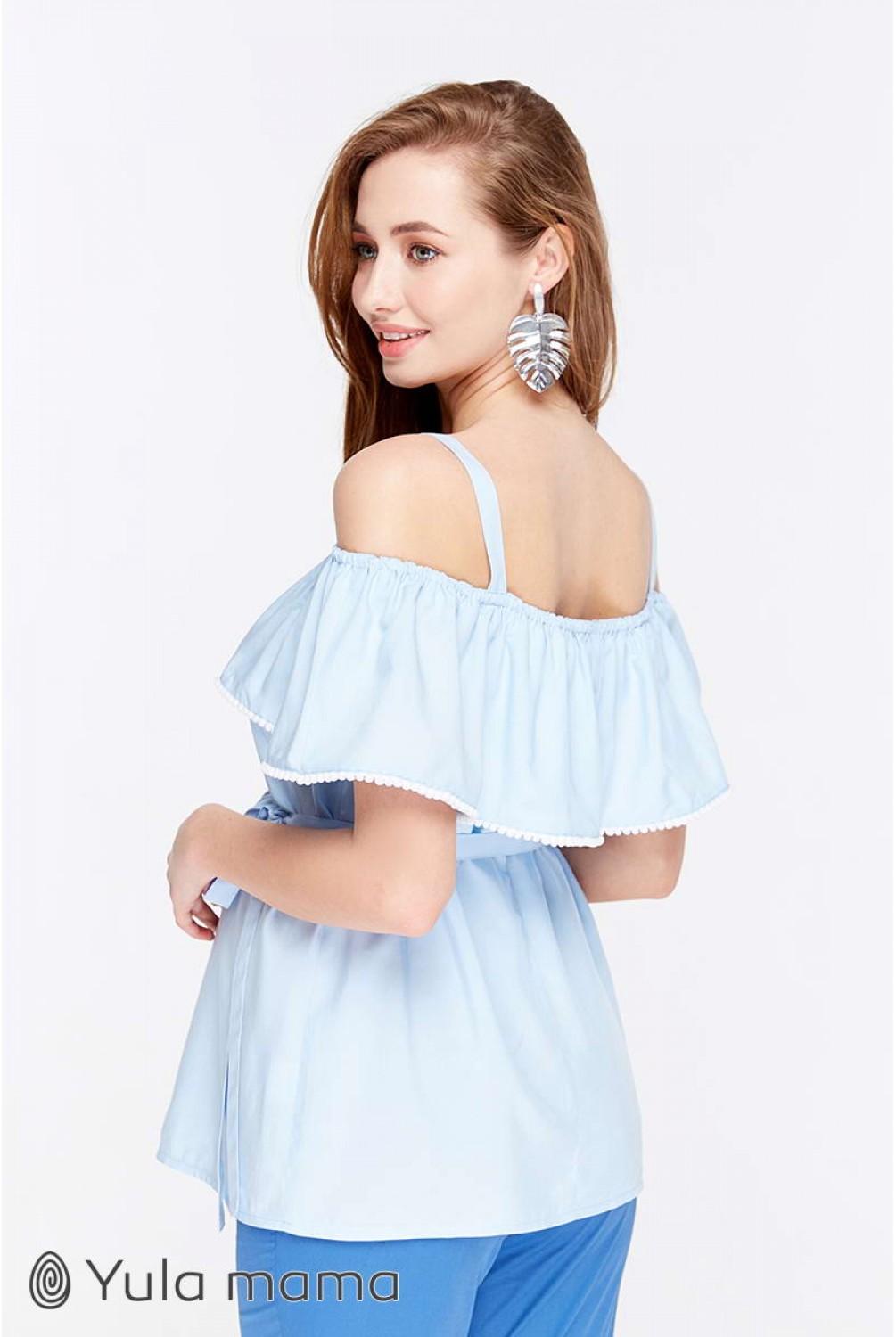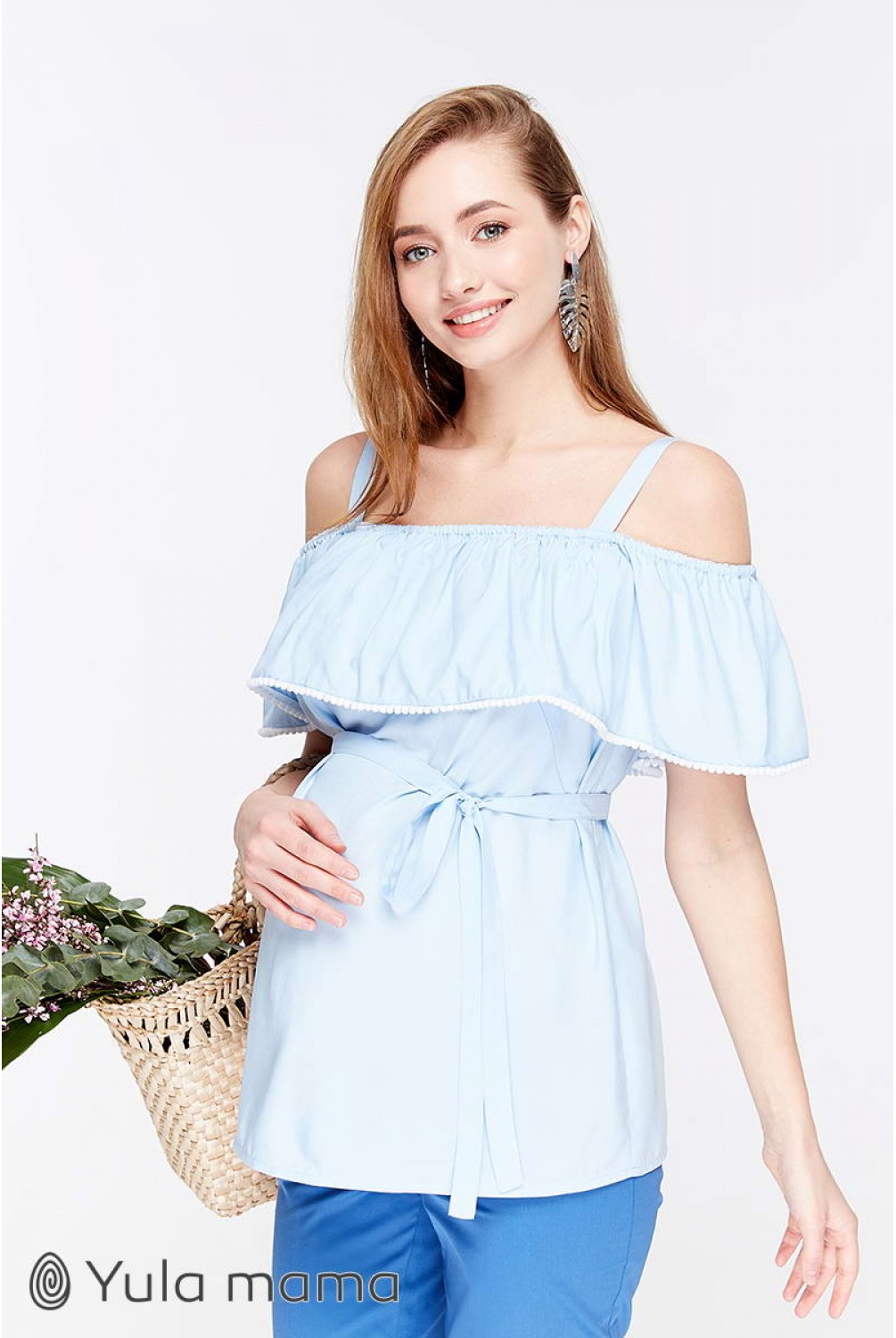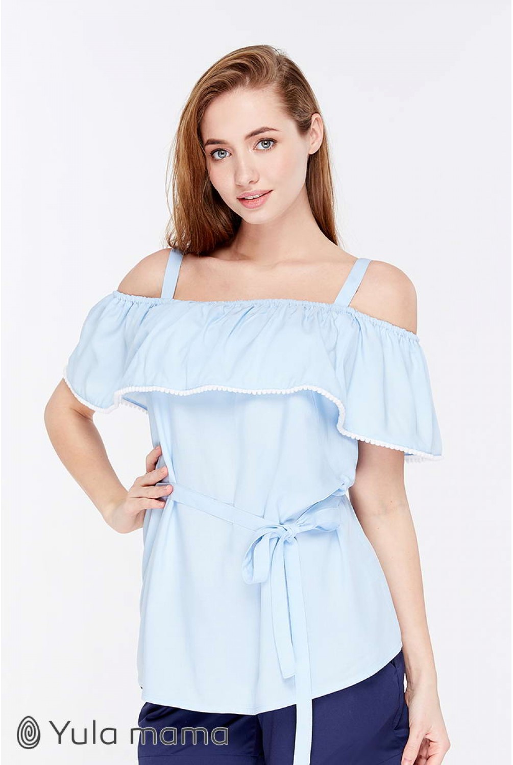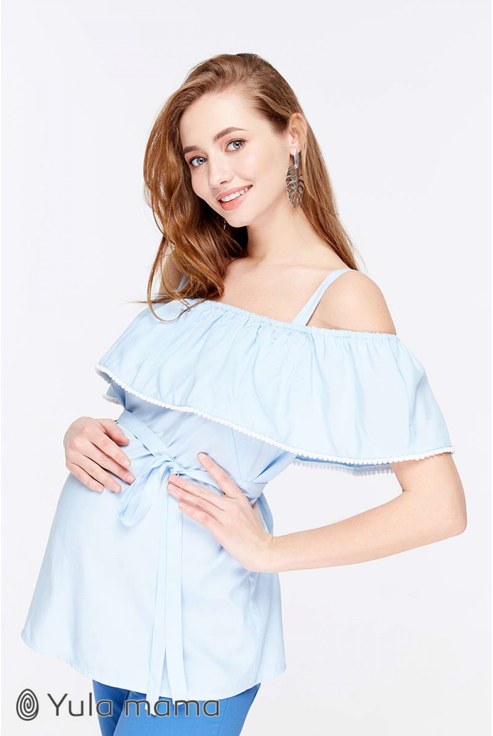 Блуза Brenda светло-голубой для беременных и кормящих. Стильная блузка из вискозного шамбре с помпонами. Силуэт: средней свободы, с оборкой по плечам. Дышащая ткань и удачно замаскированный секрет для кормления (потайные молнии в нагрудных рельефах) сделают эту модель для вас любимой на летний период.