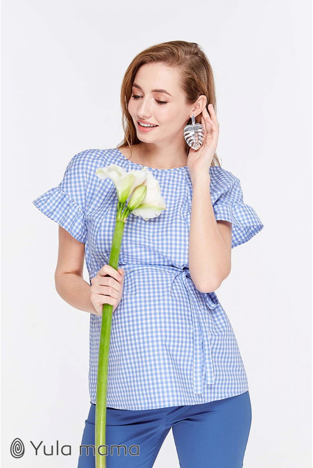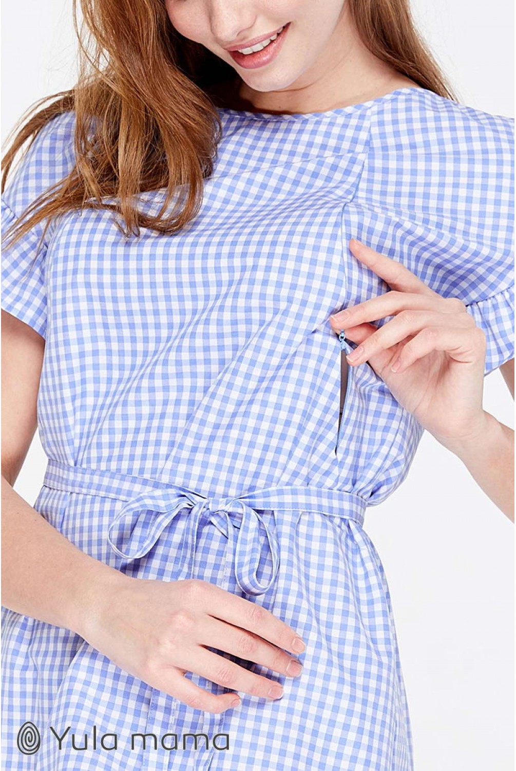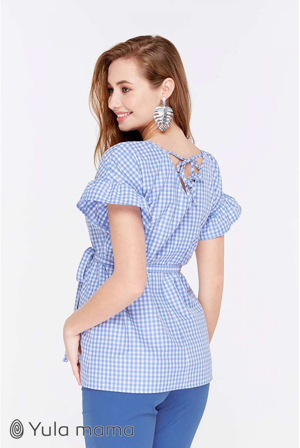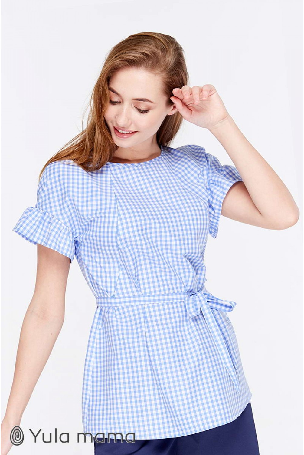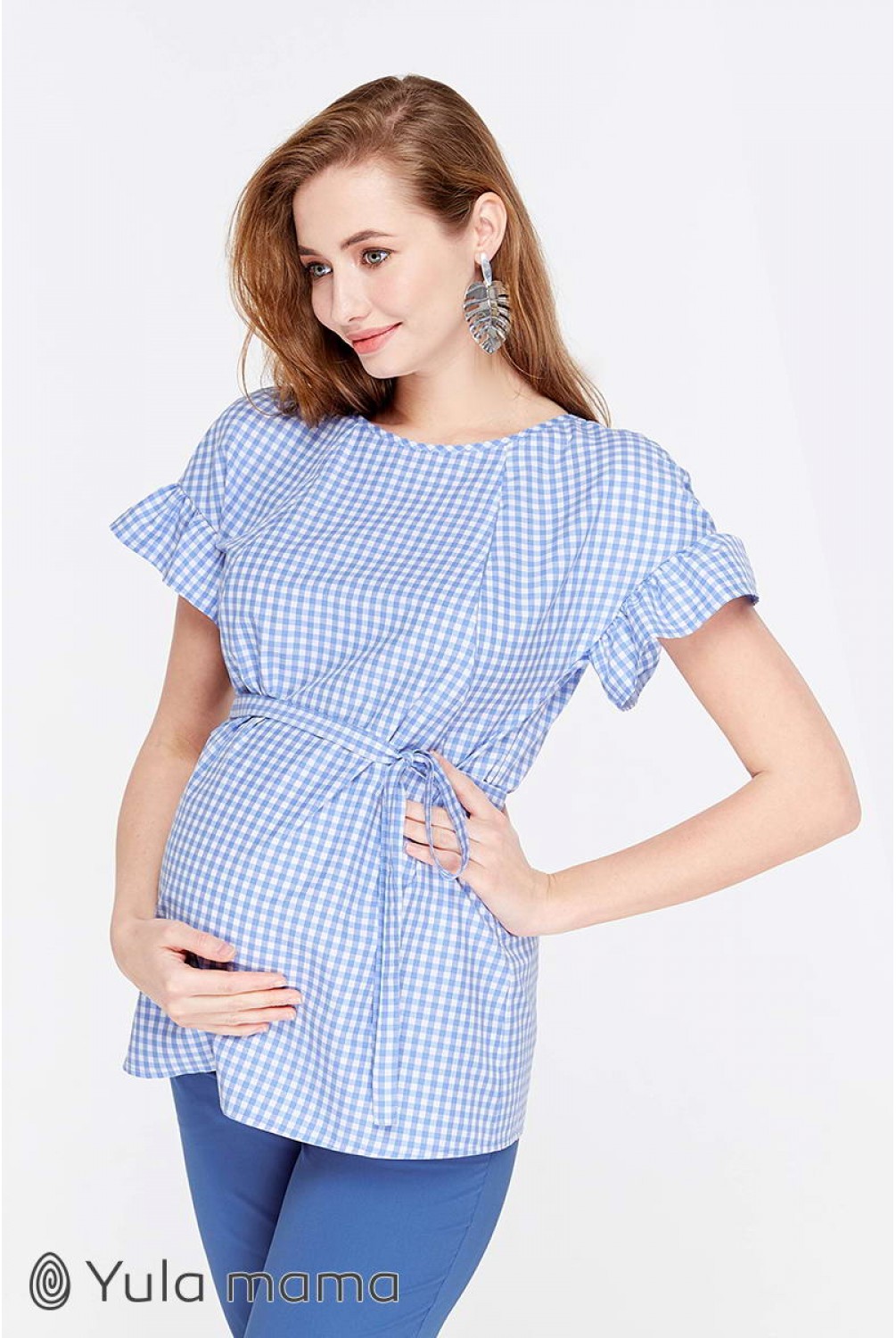 Блуза Marion бело-голубая клетка для беременных и кормящих. Трендовая блузка с рукавом-оборкой. Силуэт: средней свободы, с оборкой по плечам. Дышащая ткань и удачно замаскированный секрет для кормления (потайные молнии в нагрудных рельефах) сделают эту модель для вас любимой на летний период.