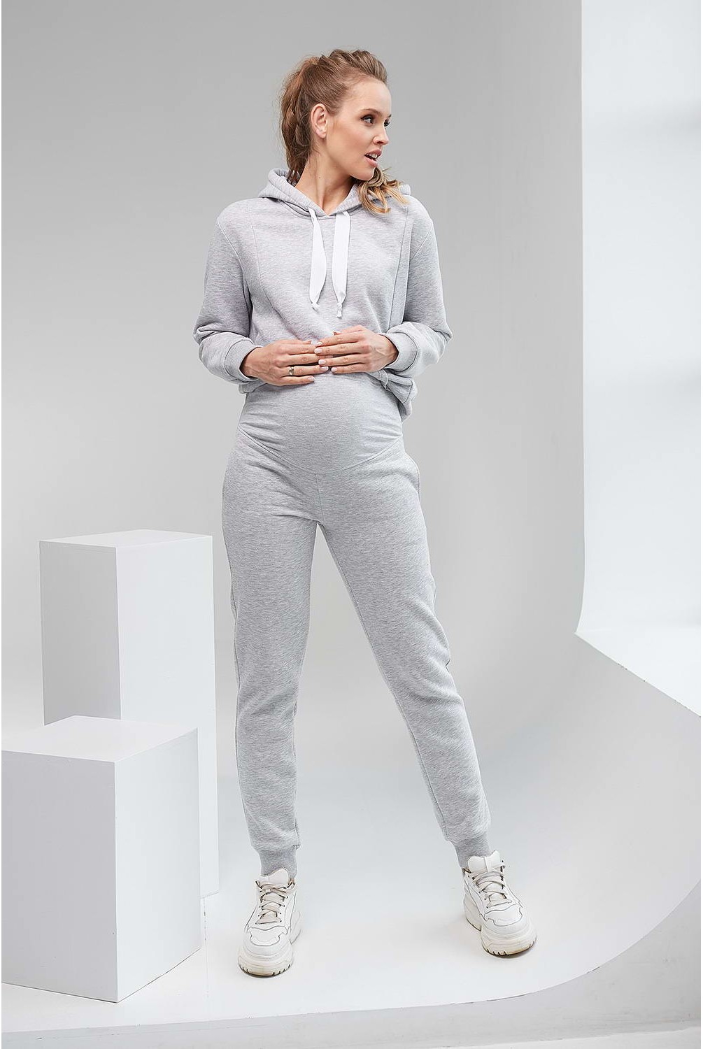 Теплые спортивные штаны серого цвета для беременных. В паре с худи 2105 1433 образуют замечательный костюм.