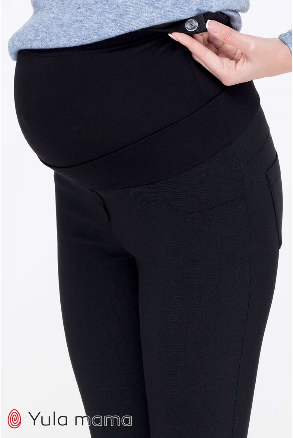 Джеггинсы Sheril warm черного цвета для будущих мам. Теплые джеггинсы из супер-стрейчевого материала с начесом. Тип пояса - комбинированный: бандаж + высокий хлопковый трикотажный пояс с перфорированной резинкой, позволяют носить эту модель во время и после беременности (предварительно убрав высокий пояс). Карманы: впереди боковые карманы-обманки, сзади накладные карманы.