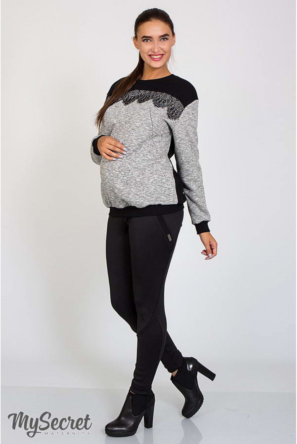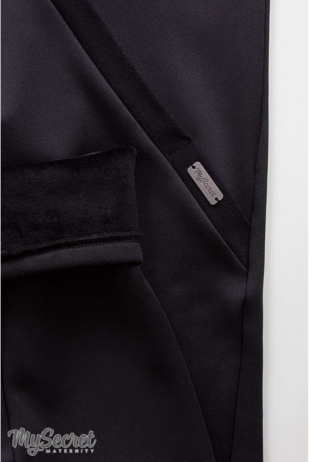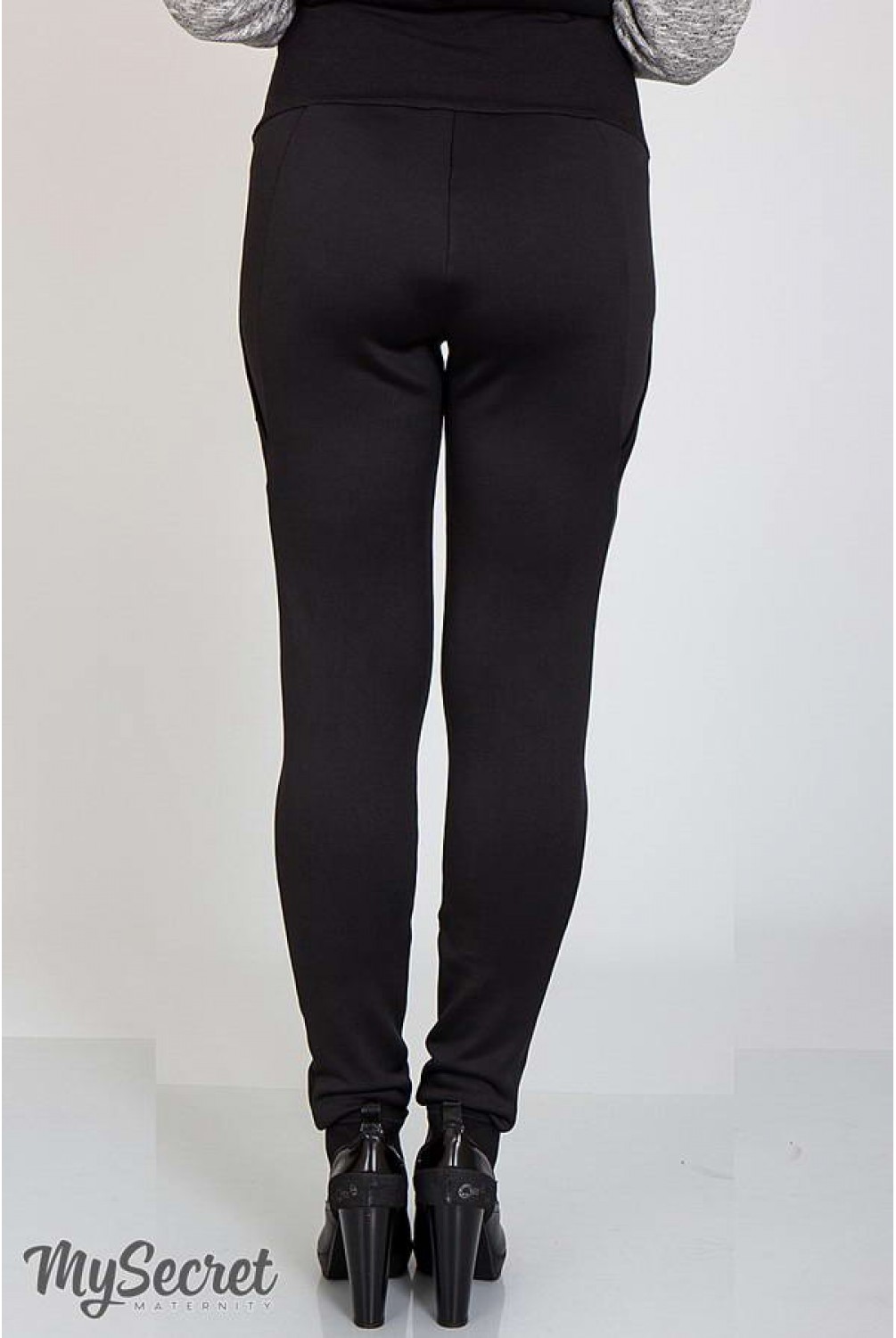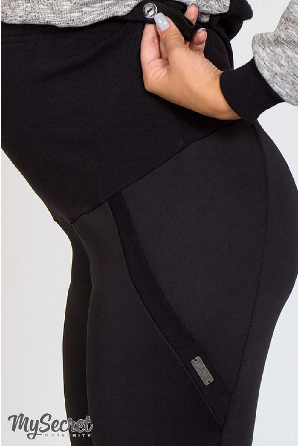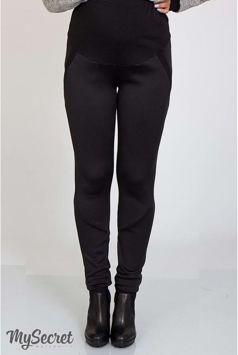 Брюки-лосины DIAZ черного цвета для беременных. Очень стильные и теплые брюки-лосины из супер-эластичного трикотажа с низким мехом на изнанке. Сочетание облегающего фасона, плавных линий подрезов, элементов из рибаны и металлического украшения-лейбы создает очень трендовую модель. Эти брюки - просто must have этой зимой. Высокий пояс из теплого трикотажа с перфорированной резинкой подарят вам максимум комфорта и тепла.