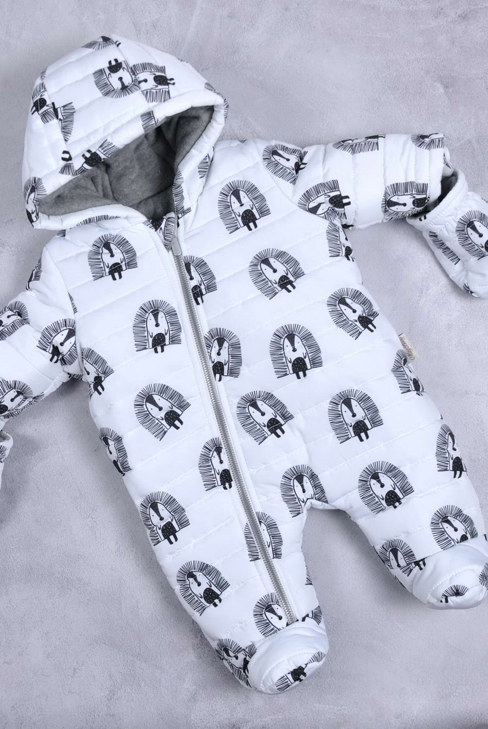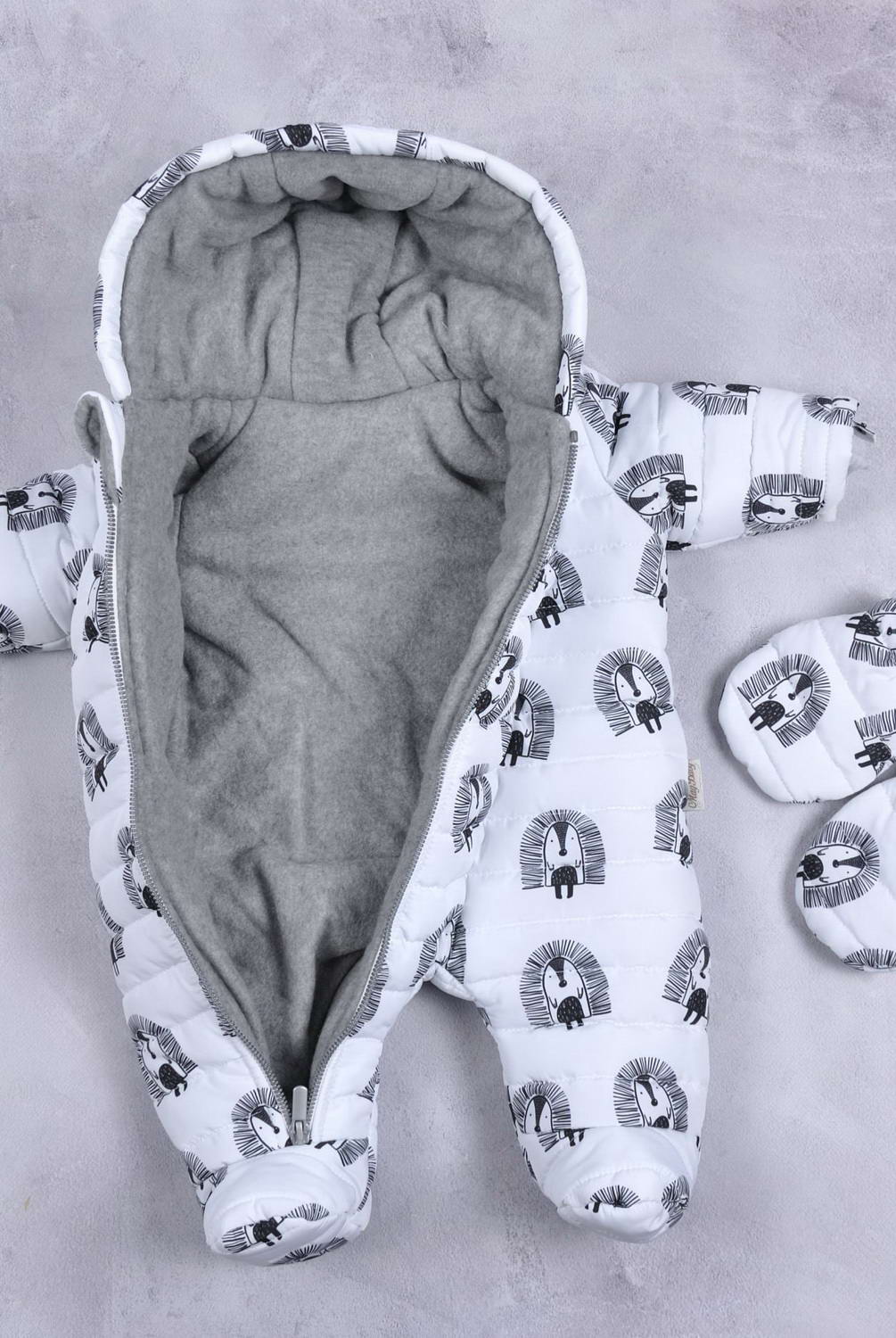 Зимовий стьобаний комбінезон "Aquarelle". Зовні комбінезон виконаний з плащової тканини, у вигляді підкладки - фліс, а утеплений комбінезон силіконізованим синтепоном 300 щільності. Тому його складно не любити! Вражає не тільки зовнішній вигляд, а й тепло, яке він дарує. Рукавички, щоб не спадати, мають гумку. Щоб ви їх не втратили, вони кріпляться на кнопку. Всередині рукава є трикотажним манжет. Застібка у вигляді блискавки і розстібається в одну ніжку.