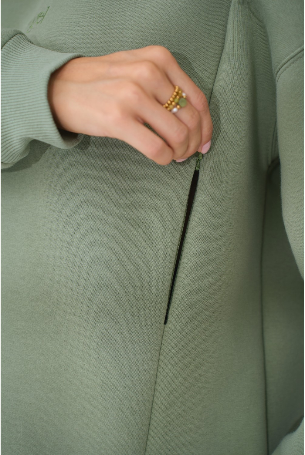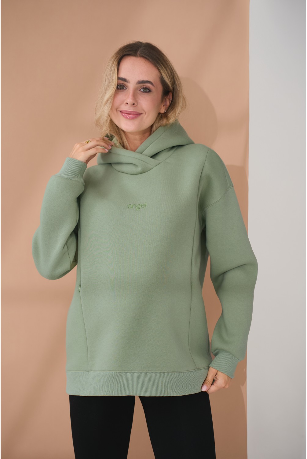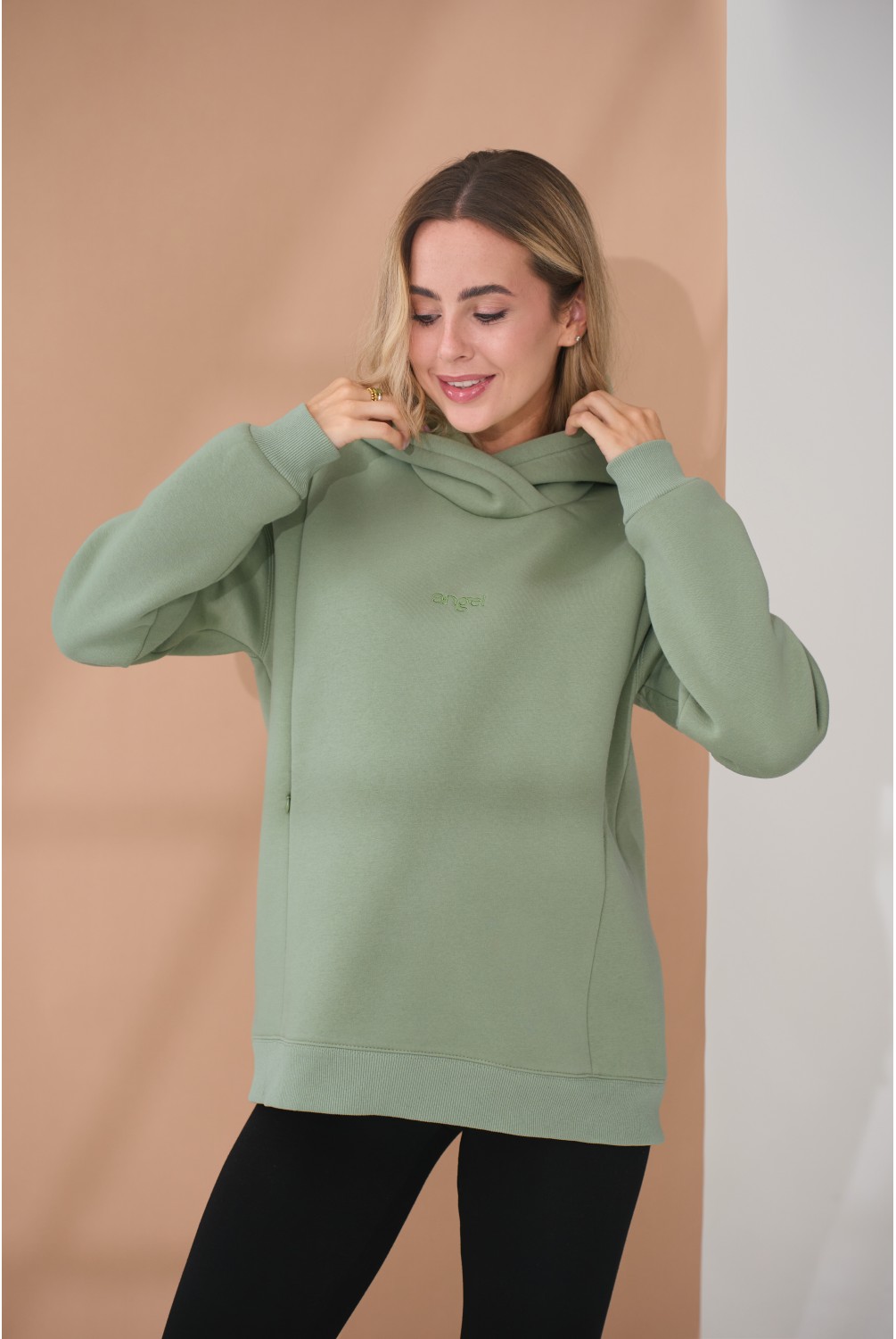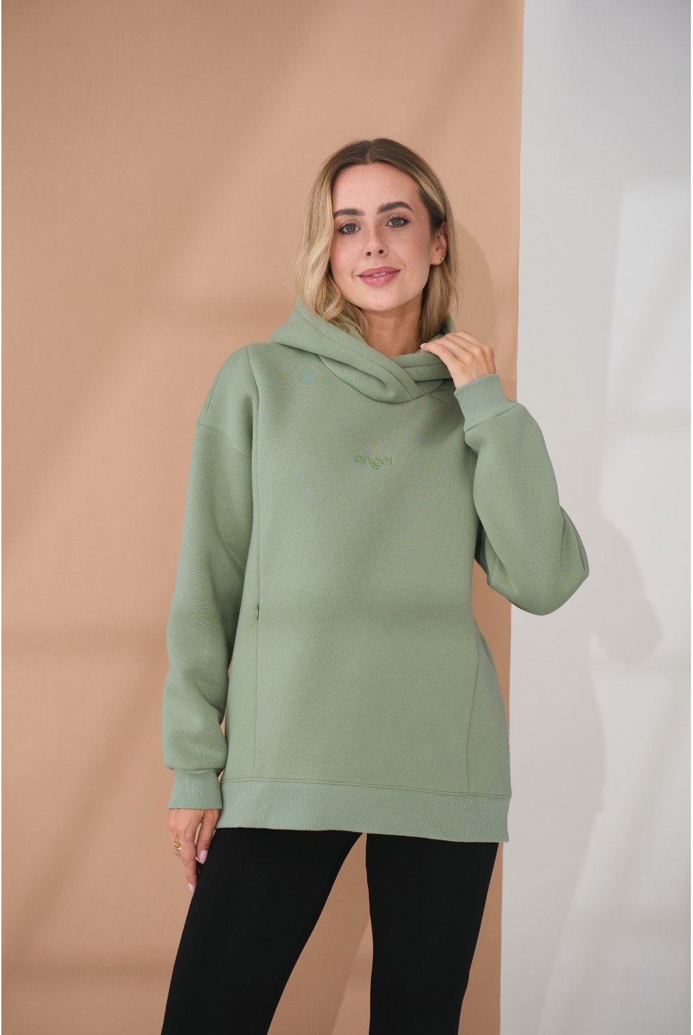 Теплий худі для вагітних та годуючих з вишивкою на грудях Angel оливковий Yula Mama