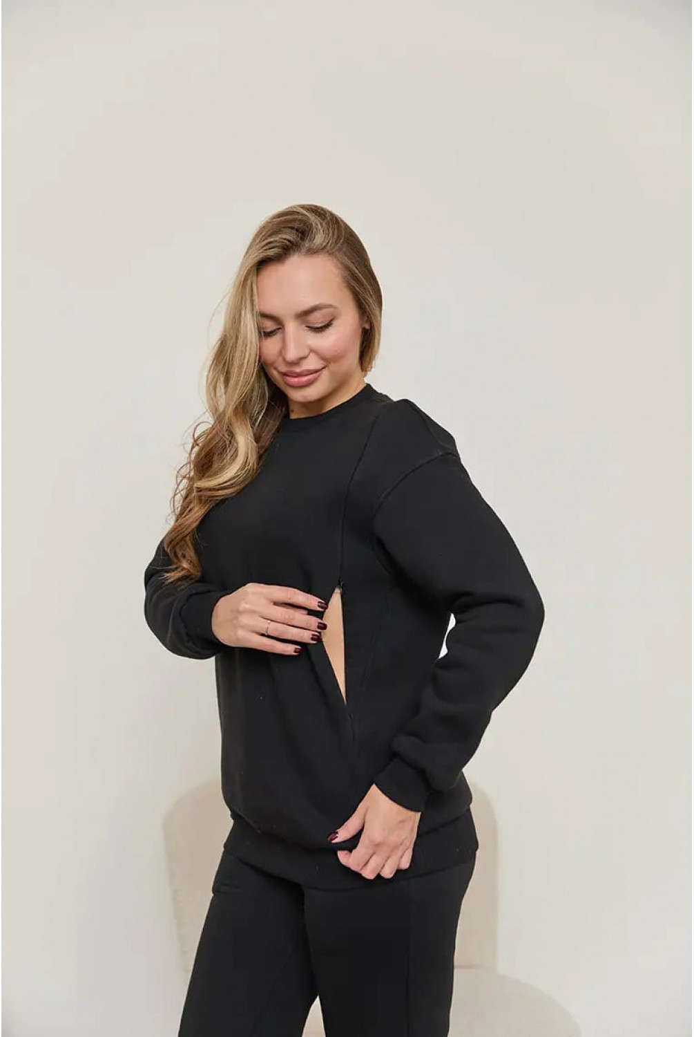 Теплий світшот на флісі для вагітних та годуючих Berlin Чорний Lullababe