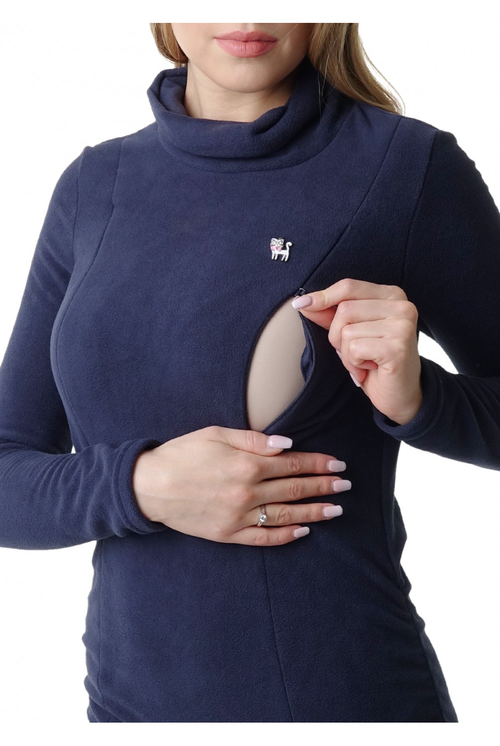 Практична модель "Пантера" з флісу з секретом годування на потайних блискавках. Фасон підкреслює жіночний силует і приховує недоліки фігури, які нерідко виникають у жінок після пологів. Внизу по боках туніки вшиті резиночки, вони створюють ефект легких складок і дозволяють опустити або підняти водолазку до необхідної довжини. Завдяки цьому модель також відмінно тягнеться на вагітний животик. Толстовка зшита з флісу - це синтетична вовна з поліестеру, за своєю структурою м'який, добре «дихаючий» матеріал, він антібактеріален, антистатичний, антиалергенними. На відміну від натуральних тканин не накопичує, відводить надлишкову вологу тіла, забезпечуючи комфорт. Модель можна носити до і після закінчення періоду вагітності та лактації.